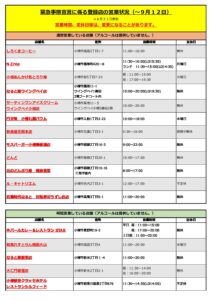 緊急事態宣言営業状況(8.27~9.12)9.1更新